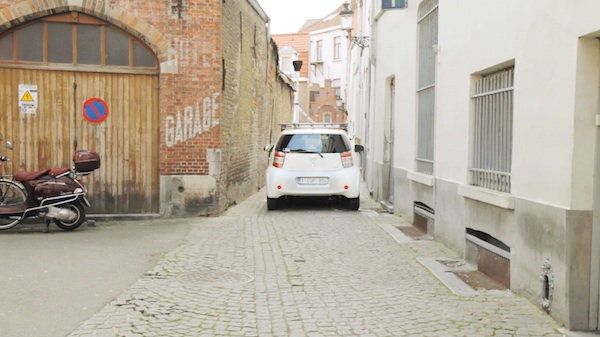 Küçük bir ülkenin küçük bir şirketinin küçük bir arabası, Google’ın yapamadığını yapıyor: Belçika’da Google’ın Street View arabasının sığamadığı sokakları filme alıyor.