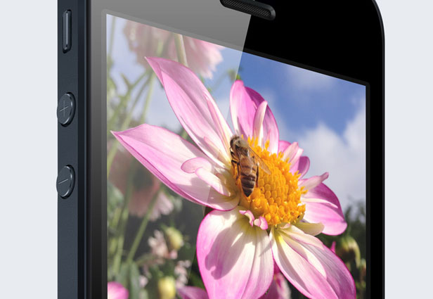 iPhone 5’in en kolay farkedilen yeniliği, daha büyük olan ekranı. 3.4 inçten 4 inç değerine büyültülen ekranın genişliğinde bir değişiklik olmadığı gibi, ekran 16:9 değerini yakalamak adına daha uzun bir tasarıma bürünmüş. Yeni ekranın çözünürlüğü 1.136 x 640 piksel. HD olmasa da Apple’ın retina display teknolojisine sahip olduğundan, iPhone 4S’ten daha iyi renk değerleri sağlıyor. Ve uzayan ekranda uygulamaların 5 satır halinde dizildiğini görebiliyoruz.