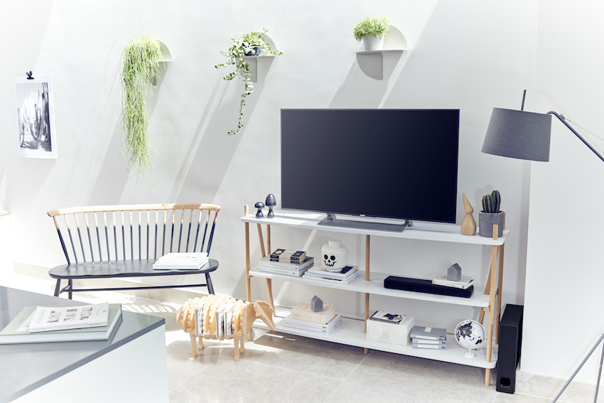 Teknolojiyi evinize hakim olacak şekilde değil, evinizin görünümü ve hissiyatına entegre olacak şekilde düzenleyin. Sony kompakt sound bar, TV’niz için surround ses deneyimi sağlamanın yanı sıra bağımsız bir müzik hoparlörü olarak da çalışıyor; bu da sahip olduğunuz alanın tüm köşelerinde dağınık bir görüntü yaratan hoparlör ve kablolar bulunmaması anlamına geliyor. Subwoofer ise herhangi bir ses kaybı yaratmaksızın kanepenin altına yerleştirilebiliyor.- Odayı, alanda daha da kalabalık yaratarak darmadağın gösterecek küçük parçalar yerine, büyük bir sanat baskısı ya da birkaç büyük resimli kitap gibi dikkatlice seçilmiş büyük ölçekli aksesuarlar ile süsleyin. Aynı şekilde mobilyanın hemen önünde biten kısa bir halı yerine mobilya altına girebilecek uzunlukta bir halı tercih edin.