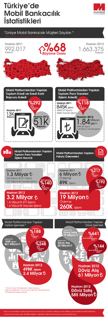 Türkiye Bankalar Birliği’nin raporuna göre hazırlanan infografik, 2011-2012 yılları arasında mobil bankacılığın hızla geliştiğini ve kullanıcıların banka işlemlerini mobilden kullanma sıklıklarını gösteriyor.