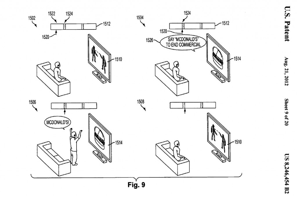 Patentte ayrıca PlayStation’a bağlı bir mikrofon da gösteriliyor. Mikrofonun işlevi de izleyicilere ne tür reklam görmek istedikleri sorusunu sesle yanıtlama fırsatı vermek ve bazı tür reklamlarda izleyiciye tıpkı aşağıdaki karikatürde gördüğünüz gibi reklamı sona erdirmek için markanın adını söyletmek.