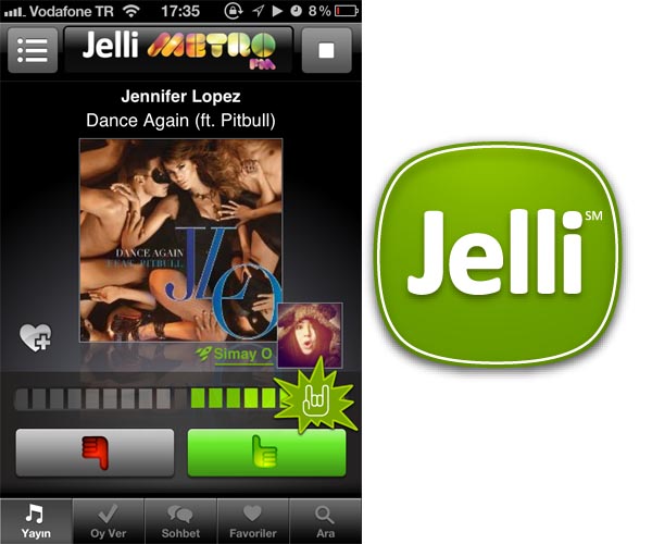 Yayında çalacak şarkılar ise verilen bu oylara göre belirleniyor. Dinleyiciler Jelli üzerinde çalacak sıradaki şarkıyı Facebook ve Twitter aracılığı ile arkadaşları ile paylaşabiliyor, diğer Jelli üyeleri ile sohbet edebiliyor ve Jelli’de yer alan “Roket” ve “Bomba” özelliklerini kullanarak sıradaki şarkıyı daha hızlı belirleyebiliyorlar.