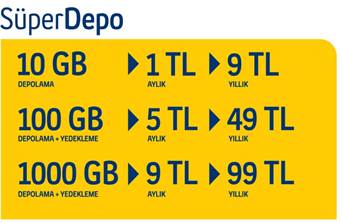 Kullanıcıların her türlü dosyasını güvenli bir şekilde depolayabilmelerini, sosyal medyada paylaşabilmelerini ve internet erişimlerinin olduğu herhangi bir yerden bu dosyalara erişebilmelerini sağlayan SüperDepo’da, Fiber İnternet abonelerinin paketleri ne olursa olsun depolama sırasında hızları 100 Mbps’ye yükseliyor. Üstelik SüperDepo kullanım sırasındaki internet trafiği fiber internet kotalarından düşmüyor.