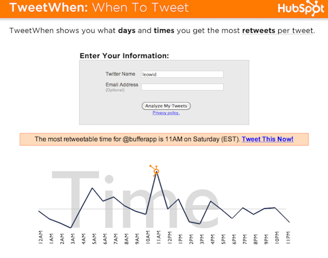 Dan Zarrella tarafından geliştirilen bu araç, geçmiş 1.000 tweetinize bakarak hesaplamalar yapıyor. Aynı WhenToTweet’te olduğu gibi, hesaplamalar çok hızlı, yalnızca birkaç saniye içinde sonuç alıyorsunuz.