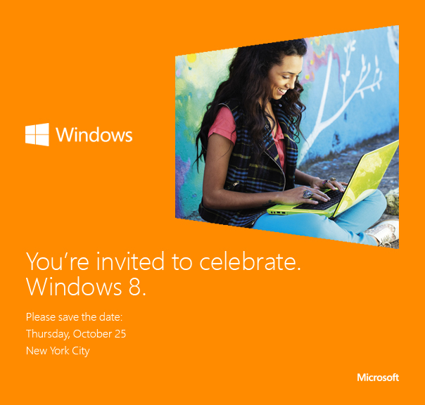 Birkaç aydır test sürümünde olan Windows 8, 25 Ekim’de New York City’de düzenlenecek olan bir etkinlikte resmî olarak tanıtılacak.